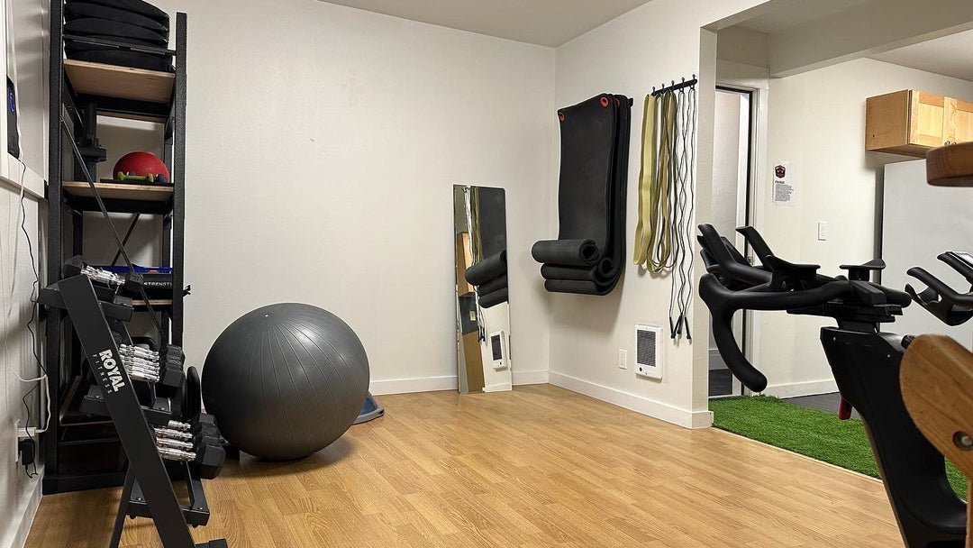 Jump on a bike and watch a little netflix. Head down the hall for a shower or a sauna. Make yourself at home!